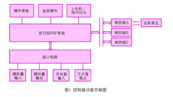 本公司高压变频器控制器的功能方框图如图1所示,主控制器的结构为单元组合式,其核心为双dsp的cpu单元,通过总线底板与信号采集板和相控a、b、c板互通信息。从接口子模块di、ai可接受操作命令、给定信号、电机电流与电压等。cpu板根据操作命令、给定信号及其它输入信号,计算出控制信息及状态信息。相控a、b、c板接受来自cpu板的控制信息,产生pwm控制信号,经电/光转换器,向功率单元发送控制光信号。来自功率单元的应答信号在相控a、b、c板中转换成电信号,预处理后送cpu板处理。状态信息可通过信号采集板和接口子模板送出。主控制器根据控制命令、给定信号及运行信息、应答信息进行运行控制、状态分析、故障诊断等运算,检测出故障后按故障性质进行故障处理,如封锁系统、高压跳闸等,并给出相应故障信号,还提供故障音响信号。从i/o接口可输出运行状态(开关量)及运行参数(模拟量),用户可根据需要选择输出量。cpu单元上备有调试用pc机接口,通过在pc机运行调试程序,可以以画面形式进行调试和诊断,并可同时显示系统中五个变量的时间波形和数字量,是系统调试和诊断的良好工具。cpu单元上还备有通信接口(rs-232),可以以通信方式从上位机取得控制命令和给定信号,控制变频器的运行,并返回运行状态和运行参数的有关信息,以供集中监控。
