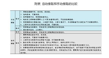 根据利德华福公司近2000多套运行业绩的统计,大部分的客户选择手动旁路方案。与自动旁路方案比较,二者的区别如附表所示。