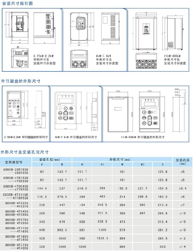 8000B系列增强型变频器是在本公司8000系列和S350系列产品的基础上,根据变频器未来的技术发展方向,同时结合市面上主流的各品牌变频器,进行技术优化而推出的一款全新产品。