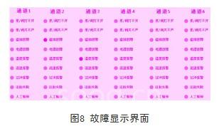 故障显示对于自控系统是十分重要的,故障显示界面要尽量简洁明了,让操作人员一目了然,因此对应每一个通道的每一个报警点独立设置参数,在正常状态下均显示绿色,在有报警情况下显示红色,直至故障排除恢复绿色,并且伴有声音报警,对于严重故障(如溢油)更会弹出对话框进行报警(如图8)。