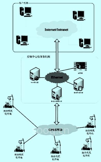 (2) 通讯层:本层由服务器群组的ethernet通讯资源子网和gprs数据传输网组成,负责服务器群组数据交流以及现场采集的实时数据传输。