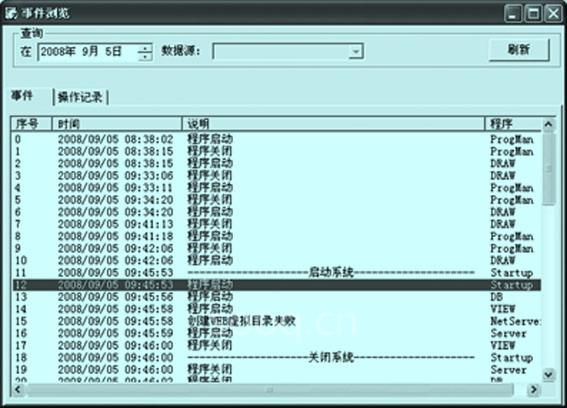 报表中的参数可以根据需要选择是否浏览。报警及操作员的操作信息都可以记录,通过图5界面查询。