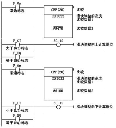 (5) 同时需要在程序里设置上下软限位来控制滑块调整的行程,防止硬件限位不起作用而发生超行程现象。程序如下: