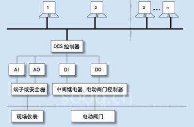 本系统由1个工程师站、1个操作员站、1个I/O站和过程控制网络组成,并通过以太网和车间主任的管理计算机相联,实现远程查询遥控。工程师站内装有组态软件平台可完成修改参数和系统维护的任务;操作员站是操作人员完成生产过程监控管理的平台;I/O站完成整个工业过程的实施监控,由主控卡、数据转发卡、 I/O卡、供电单元等组成,为了确保系统的可靠性,主控卡件、数据转发卡为冗余配置。