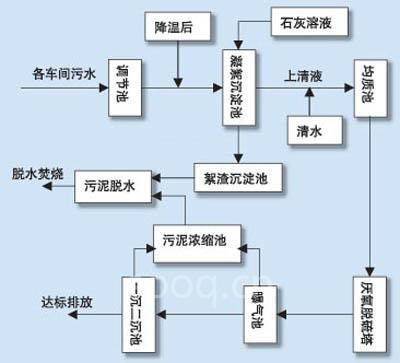 沉淀池定时打开石灰泵及阀门,加入按照比值控制配比好的熟石灰溶液,以加强污泥的脱水能力及改善污水的PH值,在若干时段内离线采集池内废水,测量其酸碱度。沉淀池底部的刮泥机定时工作,将沉淀下来的污泥刮入絮渣沉淀池,再定时控制每日排出定量的浓缩污泥进入污泥脱水工序。沉淀池中的上清液体经加水稀释后排入均质池,定时排入下一道工序。