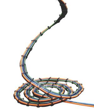 易格斯(igus)公司专注于工程塑料,已经开发出一种模块化能源拖链,能携带线缆、管道和其他媒介,垂直高度达到5m或更长。犹如纸带,占用空间不多的"举带(liftband)"几乎是从完全平坦的位置被拉起。在空间有限的地方,拖链能被连续连接起来。
