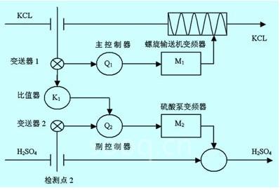 图1kcl-h2so4双闭环流量比值控制系统原理图