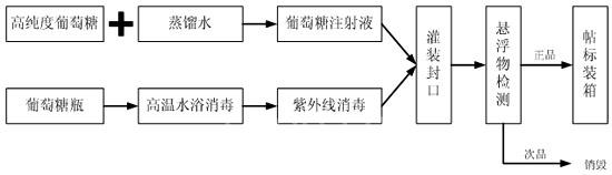 药用葡萄糖注射液的生产流程如下图所示,首先通过高浓度的葡萄糖加适当比例的蒸馏水得到葡萄糖溶液,然后葡萄糖溶液灌装到经过高温和紫外线消毒的容器里面进行封装。封装后的产品在进行质量检测,检测的对象主要是:药液里面的悬浮物,如不容性杂质,玻璃纤维等;瓶身的缺陷;瓶身有未清洗干净的脏污。
