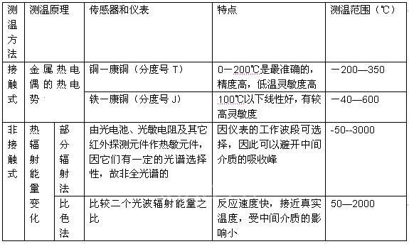2.非接触式仪表测温是通过热辐射原理来测量温度的,测温元件不需与被测介质接触。实现这种测温方法可利用物体的表面热辐射强度与温度的关系来检测温度。有全辐射法、部分辐射法、单一波长辐射功率的亮度法及比较两个波长辐射功率的比色法等。非接触式仪表测温的测温范围广,不受测温上限的限制,也不会破坏被测物体的温度场,反应速度一般也比较快;但受到物体的发射率、测量距离、烟尘和水气等外界因素的影响,其测量误差较大。