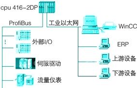 安装有wincc软件的scada(supervisory control and data acquisition:数据采集监控系统)上位机通过工业以太网和plc(cpu-416-2dp)进行连接,利用工业以太网的高速特性将大量的设备实时数据从plc中读取,同时在生产的任何时刻都可以高速稳定的依据操作员的操作进行工艺配方的重新下载。具有大量数据的多个工艺配方存储在上位机的硬盘中,其数量只取决于pc机硬盘的内存空间,任何时刻plc只运行唯一的工艺配方。这样可以大大节省plc的内存空间。各种设备的实时状态通过高速以太网从plc迅速及时地传回上位机,通过wincc的报表系统将各种数据分类存档,供erp及下游下设备进行访问。plc通过profibus的各种外设i/o、伺服驱动器、流量计收集各种设备状态并对设备进行控制。