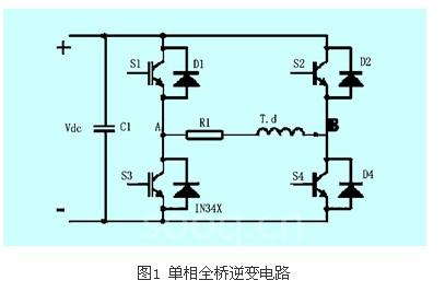 全桥逆变器的主电路图见图1。由于控制方式的不同,它可以有很多种工作方式,常用的工作方式为: