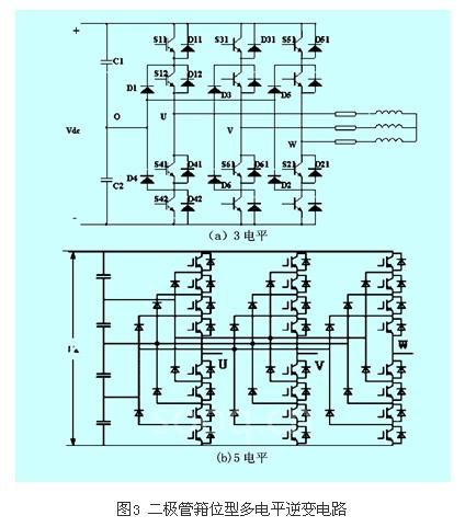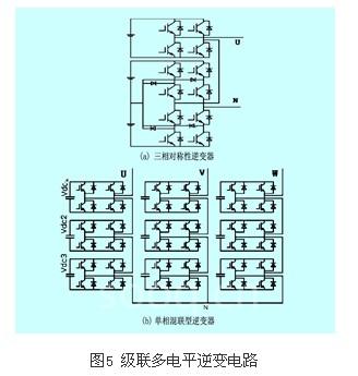 多电平逆变器实现的结构一般主要有:二极管箝位型(diode-clampedinverter)、飞跨电容箝位型(flying-capacitorinverter)、具有独立直流电源的级联型(cascaded-inverters with separate dcsources)、具有多绕组变压器输出的多重化型等等。