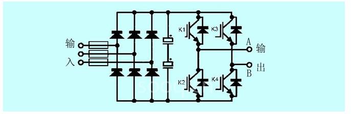 以目前最常见的单元级联式高压变频器为例,对其中一个功率单元为例进行热设计。功率器件采用igbt,其电路如图1所示。