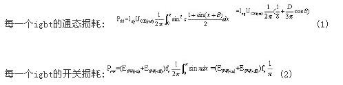 在设备稳态运行时,功率单元内整流二极管、igbt、续流二极管总的功率损耗即为散热器的耗散功率。因此热设计的第一步就是对上述器件的总功耗进行估算。