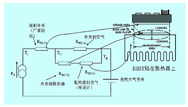 rθ(c-a)是散热器基准点到环境基准点的热阻,其值由散热器形式、尺寸和冷却方式决定;