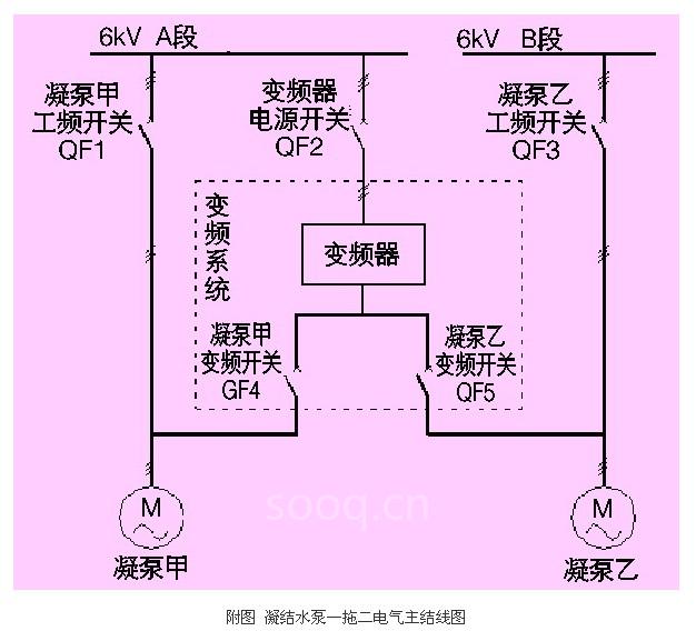 (2) 凝泵甲工频开关(qf1)和凝泵乙工频开关(qf3)两个开关与变频电源开关(qf2)不用互锁。