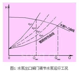 水泵站的装机是按最不利条件下、最大时流量和所需相应扬程决定的。而实际上每一天内只有很短时间能达到最大时流量,大多数时间里,水泵站都处在小流量下工作。为了适应流量的变化,许多泵站在运行中采取关小出口闸门的办法来控制流量,从而造成出口闸门前后的压力差值(少则多米多则几十米)就白白地浪费于闸门阻力上,如图1所示。