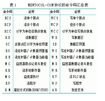 (3) 命令码: mewtocol-com协议的命令码汇总如表1所示