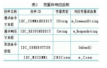 首先利用mfcappwizard(exe)建立一个基于对话框,支持activex控件,命名为transcomn的应用程序。然后在对话框中加入一些控件,其中那个mscomm控件(电话形状的控件)必须是在系统中注册过的microsoft communications control,由它进行通讯时首先得设置它的一些属性,这些属性既可以在控件属性对话框中设置也可以在程序中设置,本文用后一种方法,在程序中对mscomm控件属性设置。最后用classwizard为控件添加变量和响应函数如表2