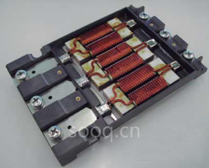 为缩小电力转换器的尺寸,还改善了周边部件。例如,照片中的滤波器模块为了以100kHz驱动转换器电路,与阿尔卑斯绿色器件共同试制了专用电抗器。