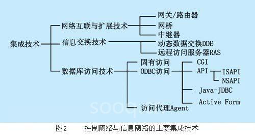 当控制网络与信息网络有一共享工作站或通信处理机时,就可以通过动态数据交换技术实现控制网络中实时数据与信息网络中数据库数据的动态交换,从而实现控制网络与信息网络的集成。
