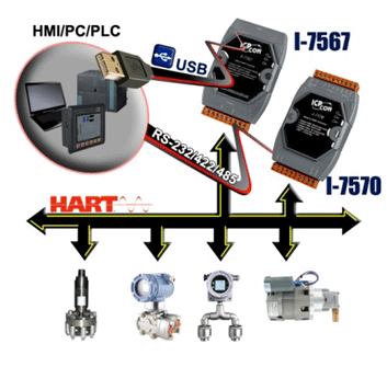 I-7567 / I-7570为泓格科技所开发的HART通讯接口转换器,它允许PC、PLC、HMI、PAC等控制端通过USB (I-7567) 或串行(I-7570) 接口方式来轻易存取 HART从站设备,这些HART设备可以是传送器、制动器或一些电流输出设备等。此外,我们也提供免费软件工具 (HC_Tool),让使用者可以更方便快速地读取及组态HART设备,为了符合更多使用者的需求,泓格科技对HART转换器模块新增以下功能。