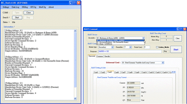 • 自动搜寻HART总在线之所有HART设备功能,并显示所有HART设备之详细信息