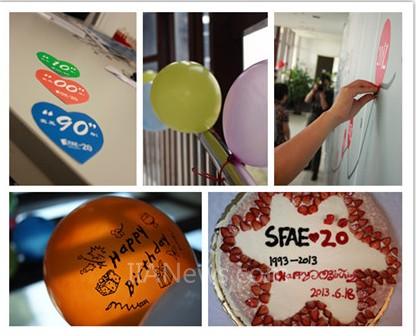 庆生会中的一个重要环节是大家将自己的照片贴在了SFAE二十年历史墙上。这面历史墙的背景是公司20年来发展的轨迹,从无到有,从几千万的产值发展到今日超过20亿的营业额,每个SFAE人都为此感到骄傲。它同时又生动地展示了同事们在各个时期的风貌,有现场工作时的照片,有项目完成后的合影,也有一同出游的美好瞬间。在这里你可以看到当年意气风发的姑娘小伙儿,如今已步入而立或不惑之年并在业务上担当起中流砥柱的老员工的变化,看到整个公司变迁的缩影。我们今天取得的成绩离不开每一个SFAE人的努力,我们每一个SFAE人也都可以在SFAE的发展历史上找到自己的坐标。