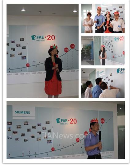 2013年6月18日,西门子工厂自动化工程有限公司(SFAE)的各个办公室和生产车间里到处洋溢着喜庆的气氛。北京办公室八楼休息区的背板被装饰得焕然一新,上面的SFAE二十周年的Logo揭示了这喜庆气氛的缘由。是的,今天是SFAE 20岁的庆生会!为了让尽可能多的SFAE人参与这一具有特殊历史意义的活动,本次庆生会还通过live meeting以在线视频直播的形式连线了SFAE遍布全国的20个办公地点。