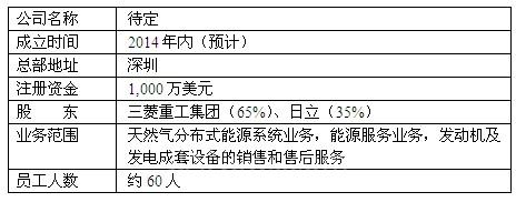 三菱重工将其所持三菱重工发动机系统(深圳)有限公司(以下简称:三菱重工发动机系统(深圳))——该公司在中国开展发动机及发电成套设备业务,由三菱重工集团100%出资——股份的35%转让给日立,并变更该公司名称,于2014年内成立合资公司。双方将充分发挥合资公司的功用,在中国的天然气分布式能源系统市场快速开展业务。这一市场未来预期将呈高增长趋势。