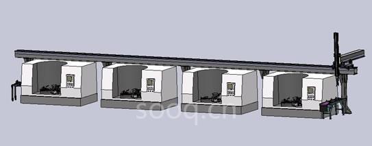图3:一台六自由度混合型机器人给四台立加上下料。