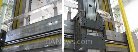 这台重型机床的研发始于2009年。两个龙门架安装在一台X轴上,提供高生产率和灵活性,在同一时间很长的部分要加载。