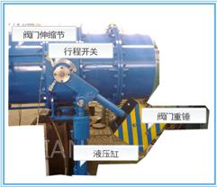 图2所示:液压缸内如果进油则油缸杆伸出举起重锤,阀门开启,达到限位位置后油泵电机停止,且将系统压力把持在6MP至8MP之间;反之,电磁阀动作后液压油在重锤的压力作用下被压出油腔,执行关阀动作,达到限位位置后停止。在动作的过程中控制柜面板指示灯以及TD文本显示器会做相应的状态显示。