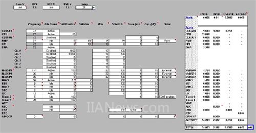 图1是一个功率估算电子数据表,它把一个典型的DSP分解为若干个子系统,由用户输入相关参数,然后可以返回设备的功率估算值。就像这个电子数据表所显示的,估算是否正确取决于用户提供的信息是否反映出对系统使用方式的良好了解,包括数据宽度、频率、电源电压和使用中外设的可用带宽的百分比等因素。