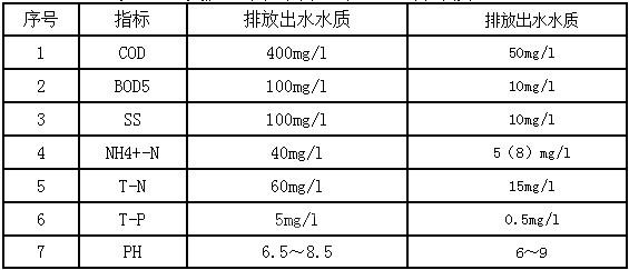 (2)根据现有水厂实际进水水质监测数据以及辽宁省颁布的《污水综合排放标准》的要求,确定设计进、出水水质为: