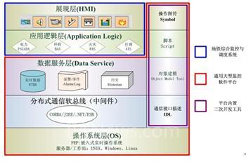 现有的城市轨道交通综合监控系统,以实时监控为主要应用目的,实现电力调度、机电设备监控、车站运营状态监视等功能,在体系架构设计和接口方面主要侧重于实时设备监控和数据处理。现有综合监控系统软件主要分为侧重于HMI功能的中小型SCADA软件和大型轨道交通综合监控软件两大类,其中目前主流的、在具体工程项目中广泛使用的是第二类,这类大型综合监控软件典型包括国外厂商的SCADAsoft、RailEdge、WinCC OA(原PVSS)、SystematICS等,以及国内北京和利时公司的MACS-SCADA、南瑞的RT21-ISCS等,这些产品都具有以下主要特性: