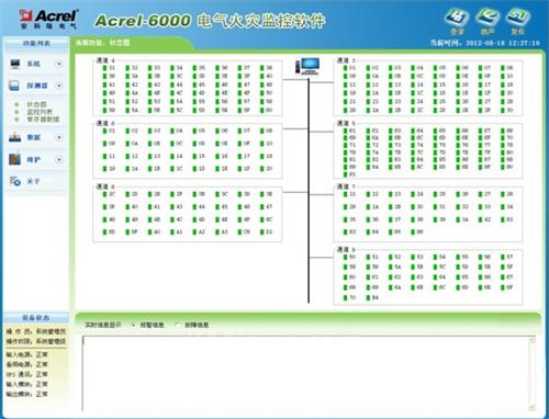 Acrel-6000电气火灾监控系统是安科瑞自主研发的用于接收剩余电流式电气火灾探测器等现场设备信号,以实现对被保护电气线路的报警、监视、控制、管理的运行于计算机的工业级硬件/软件系统。本系统应用于大型商场、生活小区、生产基础、办公大楼、商场酒店等区域的消防控制中心,对分散在建筑内的探测器进行遥测、遥调、遥控、遥信,方便实现监控与管理。本系统采用标准的Modbus现场总线将具有通信功能的探测器相互连接起来,当现场保护线路中的被探测参数超过报警设定值时,能发出报警信号、控制信号,能指示报警部位并保存报警信息。