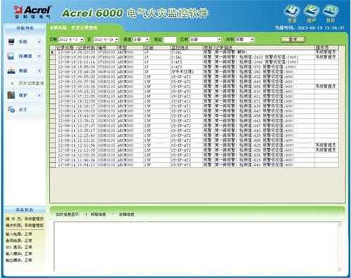 Acrel-6000电气火灾系统,可实时和定时采集现场设备的剩余电流数据和温度、并有报警提示声光报警等功能,可根据实际需要对报警温度值、漏电流值进行设置,报警故障解除时,可远方进行复位。系统可对报警事件、日期、报警值、越线值进行记录,并生成报表,可对报警事件记录进行打印。