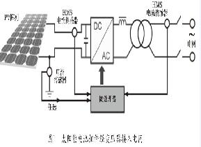 当太阳能电池板所产生的电能反馈回电网时,可以采用两种连接方式:一是将太阳能电池组件与逆变器连接,经变压器接入电网(见图1);二是将逆变器直接与电网连接,不使用变压器(无变压器系统)(见图2)。