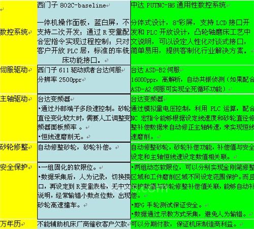 首次表1中清楚明了地表现力使用中达PUTNC-H6数控系统和使用西门子802C数控系统两者之间的不同。