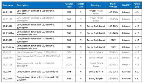一、 NXP中小功率市电供电非调光LED驱动IC选型表格