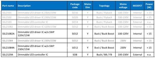 二、NXP中小功率市电供电可控硅调光LED驱动IC选型表格