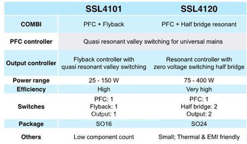 大联大控股品佳推出的NXP SSL4101驱动IC,使用Flyback 反激拓扑电路结构,同时集成PFC控制器适合于25W~150W之间的功率LED 驱动电路。而NXP SSL4120 驱动IC使用LLC谐振拓扑电路结构,同时集成PCF控制器,适合于75W~400W之间功率的LED驱动电路。
