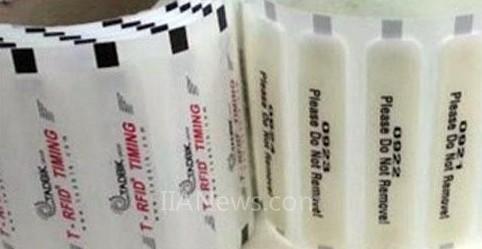 Tadbik的T-RFID计时标签,内嵌Smartrac ShortDipole M5嵌体,主要附加到运动员的脚踝或是鞋子上。