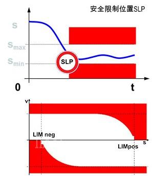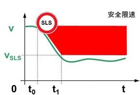 SLS功能用于监测驱动器到一个可编程的最大速度,四个不同的限制值可以被激活,在SOS情况下,速度设定点不自动影响,在SLS激活后,更高级的控制必须使得驱动在一个参考时间里降到速度限制以下。