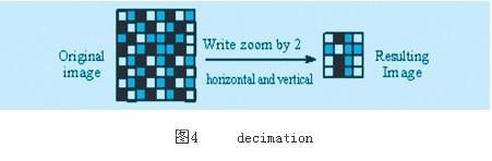 decimation实际上是对原始图像进行子采样,如每隔2、4、8、16行(列)取一行(列)组成新的图像。decimation可以大大减小原始图像的数据量,同时也降低了分辨率,有点类似于相机的binning。如下图4所示:
