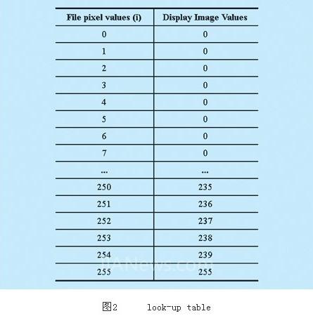 对于图像采集卡来说,lut(look-up table)实际上就是一张像素灰度值的映射表,它将实际采样到的像素灰度值经过一定的变换如阈值、反转、二值化、对比度调整、线性变换等,变成了另外一个与之对应的灰度值,如右图为一个8位的对应表。这样可以起到突出图像的有用信息,增强图像的光对比度的作用。很多pc系列卡具有8/10/12/16甚到32位的lut,具体在lut里进行什么样的变换是由软件来定义的。如图2所示。