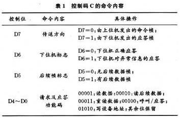 控制码C:一个字节长度,用于指明具体的命令内容。每一位代表不同的内容对应不同的命令代码,具体内容如表1所示。