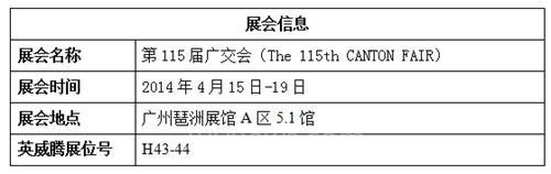 2014年4月15日-19日,第115届广交会(The 115th CANTON FAIR)将在广州琶洲展馆隆重举行,届时,英威腾将携旗下工业自动化领域低压变频器、PLC、HMI触摸屏、伺服等产品盛装出席,全面展示英威腾在自动化行业内的最新产品和一体化解决方案。