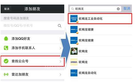 2、您可以直接搜索公众号“欧姆龙工业自动化”或微信号“OmronIAB”